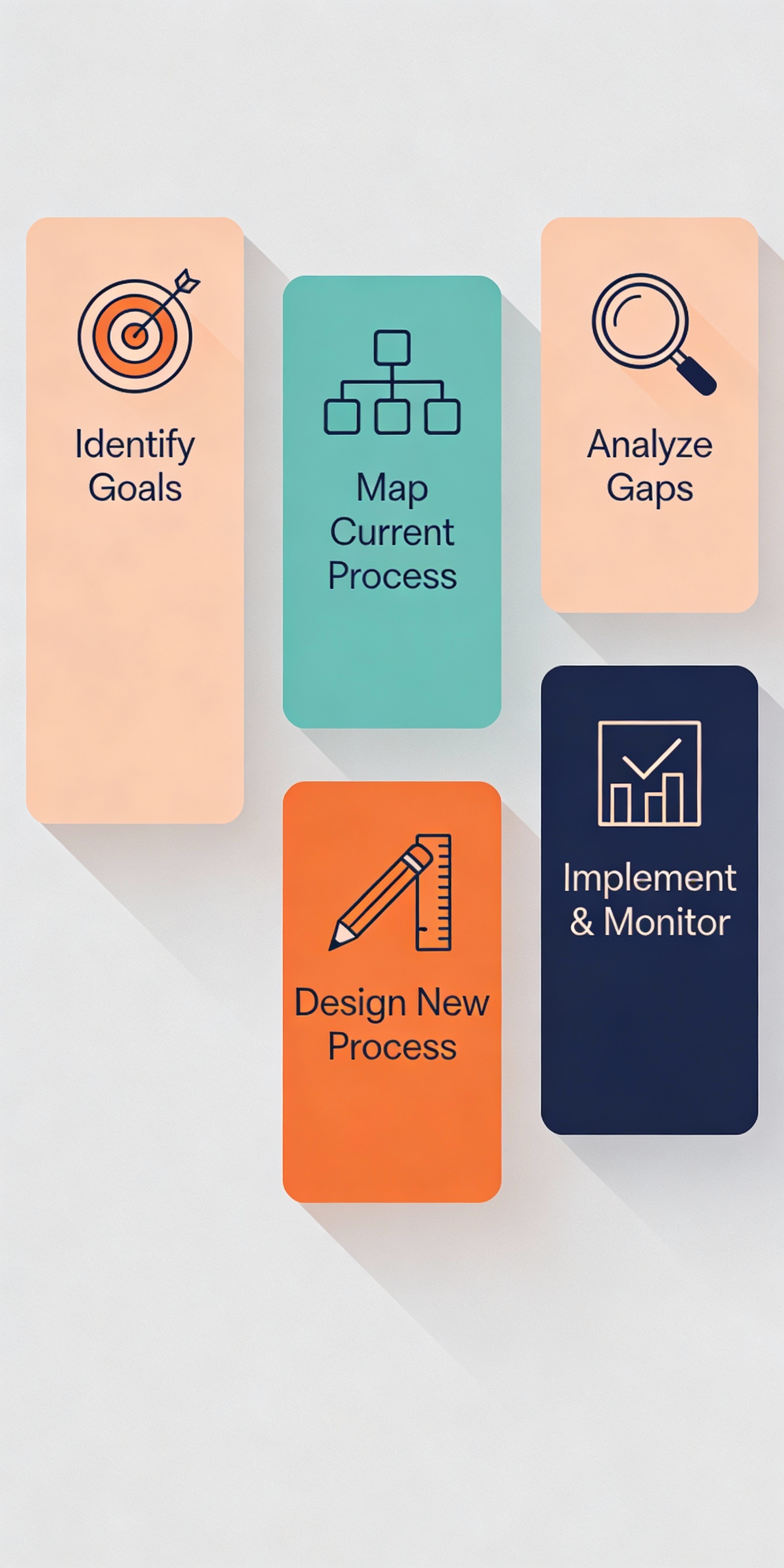 Analysoimme organisaatiosi nykyiset työnkulut ja tunnistamme pullonkaulat. Rakennettavat prosessit ovat yksinkertaisia, toistettavia ja kaikille selkeitä.